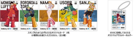 なお、Galaxy Harajukuでこれらの「Galaxy AI × ONE PIECE」体験をすると、「Galaxy AI × ONE PIECE」のオリジナルグッズをプレゼント。参加者全員がもらえるグッズと投稿するともらえるグッズをご用意しています。
