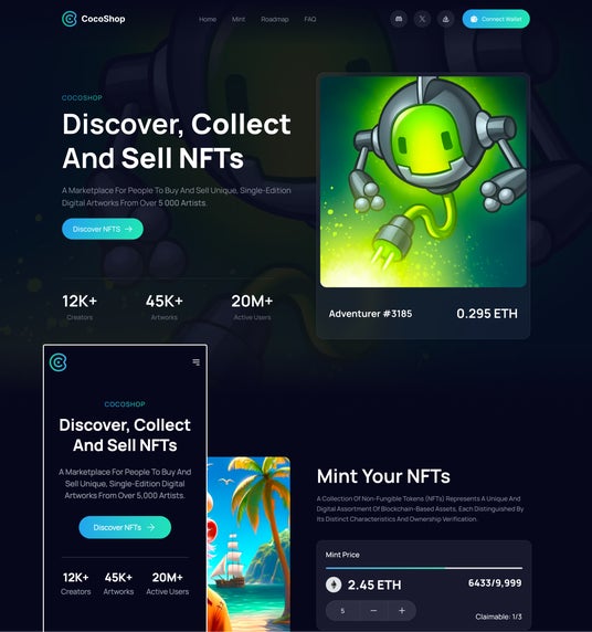 『CocoShop』はNFTプロジェクトの立ち上げから成長をサポートするプラットフォームであり、独自コントラクトのデプロイから、NFTミントサイトの作成NFTマーケットプレイスの構築、分析ダッシュボードなど様々な機能を搭載する予定です。