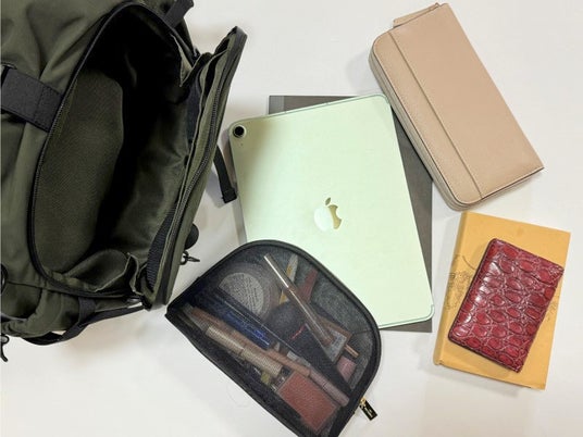 iPad、B5ノート、ポーチ、長財布、名刺入れ、単庫本など