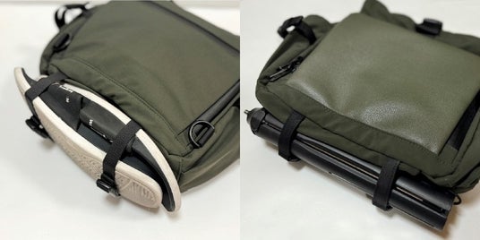 - ボトル・折りたたみ傘、三脚収納用のポケット装備
