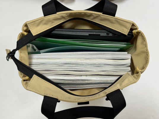 14インチパソコンやA4ファイル、雑誌を目一杯詰め込んだ状態
