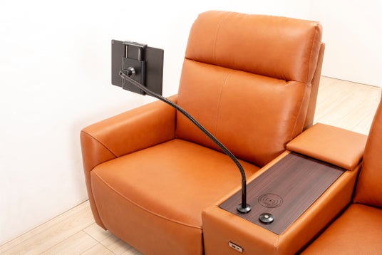 別売りのタブレットホルダーを活用すれば、電動ソファでくつろぎながら動画視聴が可能です。