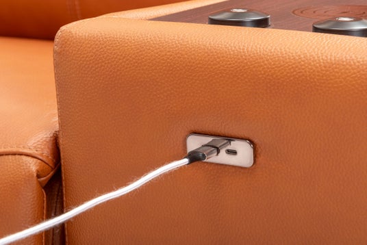 電動ソファの左右側面のスイッチ部と、センターユニットの前方部にUSBポートType-A+Cの充電機能を搭載しています。