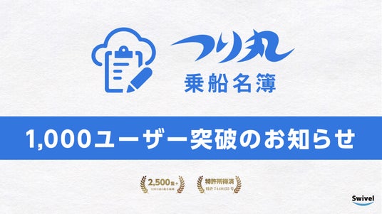 釣り船をスムーズに検索・予約できる釣り船データベースメディア「つり丸」等を提供するスイベル株式会社(本社 : 沖縄県糸満市)は、当社の提供するオフショアアングラー向けサービス「オンライン乗船名簿」のユーザー数が1,000名を突破したことをご報告致します。