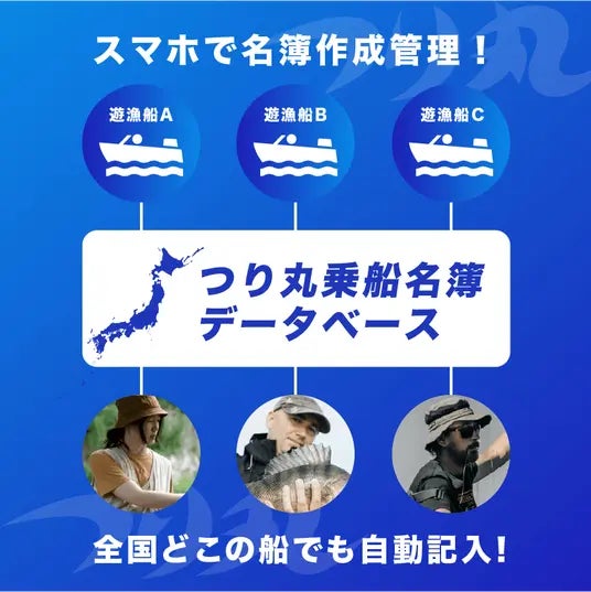また遊漁船の利用者(釣り人)にとっても、自身のスマートフォン等を用いて事前に乗船名簿を記入することができる為、より手軽な船釣り体験を提供可能です。・Android版 / iOS版