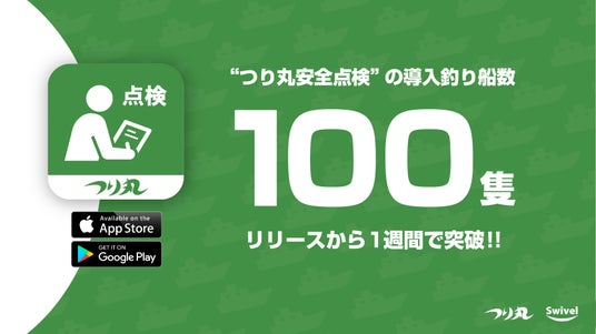 釣り船検索データベース「つり丸」等を提供するスイベル株式会社(本社 : 沖縄県糸満市 / 代表取締役:大城仁)は、遊漁船業法の改正により必須となった「出港前点検」「酒気帯び、健康確認」「乗務記録」等への対応をアプリ上で行うことができる新サービス「つり丸安全点検」の導入釣り船数が、リリースから1週間で100隻を突破したことをご報告致します。
