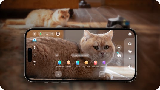 話しかけたり遊んだりおやつをあげたり。リモートでペットとのコミュニケーション。アプリには9つのアクションと7つのサウンドが組み込まれており、遠隔操作でROLA PetPalを操作してペットと遊ぶことができます。