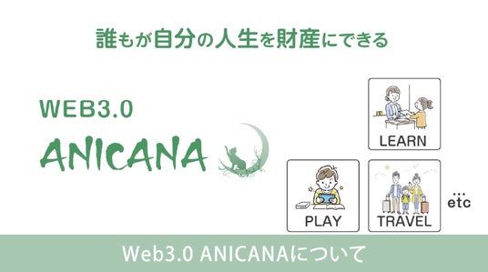 アニカナとは、Web3.0によるブロックチェーンおよび関連するシステムを使用して、人々の様々な体験をデータ化することで新しい経済的価値に変換することのできるサービスおよびプロダクト等の総称を言います。
