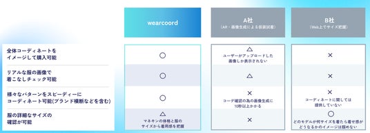 ファッションテックを導入しているECサイトは多くありますが、その多くはサイズ感の確認に特化しており、欲しい商品を使ったコーディネートや着回しが確認できないなどの理由でユーザーはECサイトでの商品購入に二の足を踏むことがありました。「wearcoord」を導入することで、ユーザーは実際に店舗へ行き試着しなくても、サイズ感だけでなく試着する手間なくオンラインで気になる商品の様々なコーディネートや着回しを作成、確認することが可能となります。