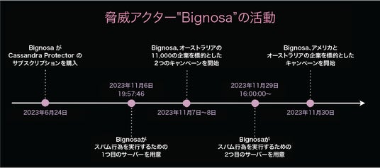 (画像1)脅威アクター「Bignosa」の活動。攻撃の準備期間から実行までのステップを示す