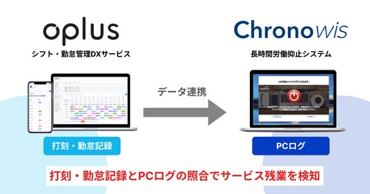 今回、連携を行う「Chronowis」は、パソコンの利用制限と稼働ログの取得により長時間労働の抑止を支援するサービスです。長時間労働の抑止という観点では、「oplus」においても勤務時間が日別・月別で一定時間を超過した際の管理者への通知機能などがありますが、「Chronowis」との連携により勤怠打刻データとPCログとの照合が可能になります。