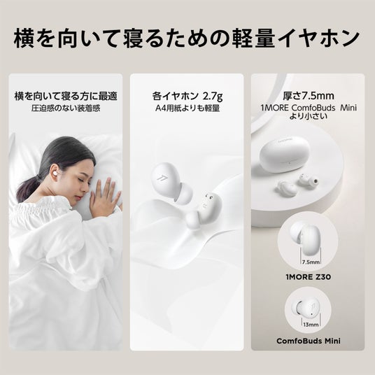 プロフェッショナルオーディオブランドである1MOREは、睡眠時に使用可能な小型設計かつイヤホン単体で6~8時間の連続再生が可能な睡眠用イヤホン「1MORE SleepBuds Z30(通称、"Z30")」を2024年4月10日(水)より日本国内のオンラインショップにて販売開始いたします。また、Z30発売記念として1MORE製品を最大45%OFFで購入できる期間限定セールを実施いたします。