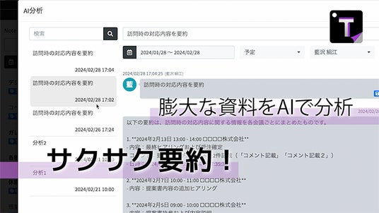 法人利用を想定し、従来のフォルダ構造に代わり、タグを用いた直観的な整理方法を採用。加えて、チャット機能及びオプションで利用できるAI機能を搭載した「Tagnet」をリリースします。