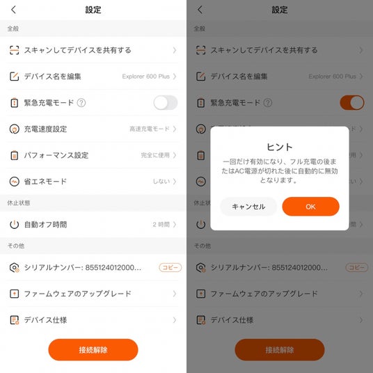 Jackery APP緊急充電モード