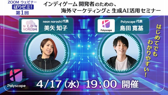 株式会社Polyscape、インディーゲーム開発者向け無料ウェビナー「ぽりゼミ!」を4/17(水)にZOOMにて開催