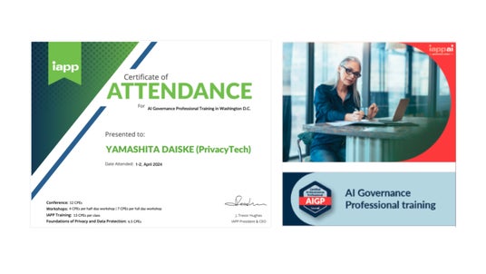 AI・プライバシーガバナンスの観点は、技術進化や規制強化、また世論の変化を受けて、日々アップデートされています。当社は、国内の法令(個人情報保護法・電気通信事業法)やガイドライン(AI事業者ガイドラインやスマートフォンプライバシーイニシアティブIIIなど)に加えて、世界最大級のプライバシー専門家のコミュニティであるIAPPのメンバーとして、AI Governance Professional Trainingの受講を通して、EU(GDPR, EU AI Act)や米国(CCPA)などの最新の動向を取り入れています。