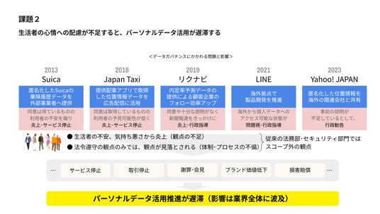 また、生活者の心情への配慮が不足し、世間からの強い批判を受けることで、パーソナルデータ活用が遅滞し、その影響は業界全体に波及する傾向があります。