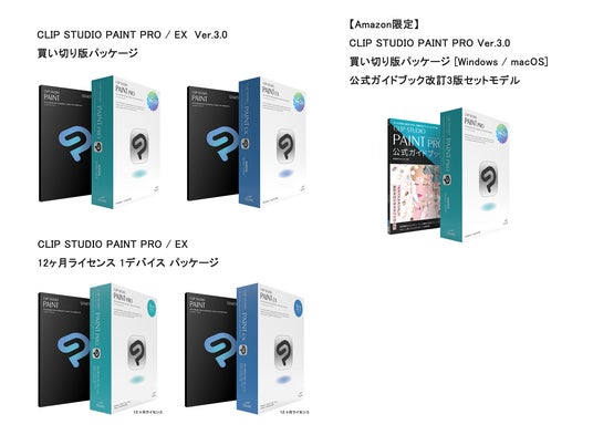 「CLIP STUDIO PAINT EX Ver.3.0 買い切り版パッケージ [Windows / macOS] 公式ガイドブック改訂3版セットモデル」をAmazon限定で発売