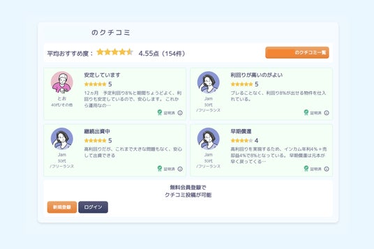 ファンドの詳細ページでは、クチコミを確認することができ、投資家がより安心して投資を行える環境を提供しています。