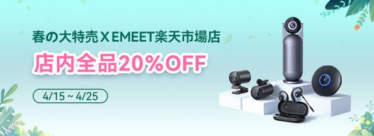 EMEET楽天市場店にて全品20%OFFになる限定セールを04月15日(月)から04月25日(木)までの10日間開催しております。この期間中は、当店の全製品が通常価格の20%オフで、お気に入りのEMEET製品をお得に手に入れる絶好の機会です。