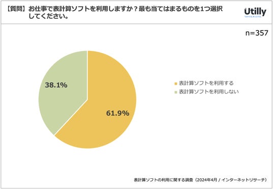 対象者の表計算ソフトの利用状況について、61.9%が仕事で利用すると回答した。
