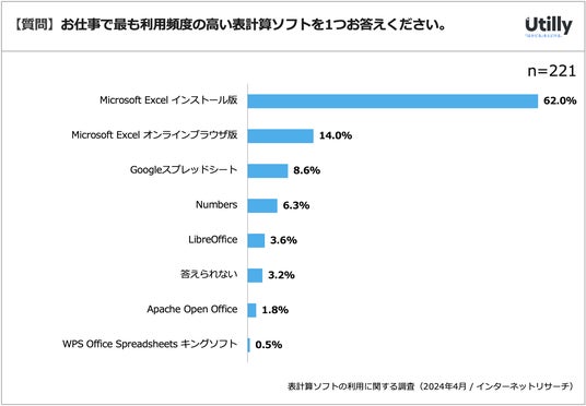 Q.お仕事で最も利用頻度の高い表計算ソフトを1つお答えください。