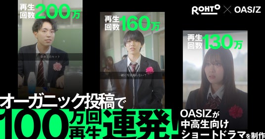 TikTokなどのショート動画プラットフォームに特化したネクストジェネレーションカンパニー、株式会社OASIZ(本社:東京都渋谷区 / 代表取締役社長:江藤 優 / 以下、OASIZ)は、ロート製薬のTikTok公式アカウントにてショートドラマの制作を手掛け、総再生回数500万回(2024年4月8日時点)を達成したことをお知らせします。