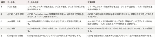 品質保証とテスト技術の重要性が高まっている現代のIT業界において、テストスキルの習得から国際的に認められたJSTQB FL資格の取得、さらにはJavaやSpring Bootを使ったアプリ実装までを短期間で学ぶことができます。