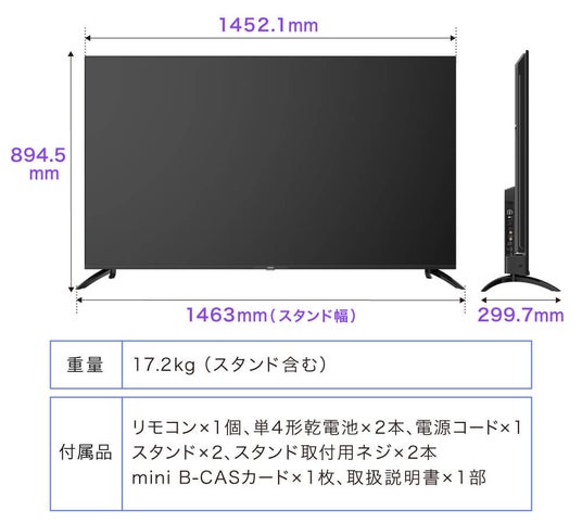 65インチ(JU65G7E):https://maxzen.jp/product/ju65g7eg/