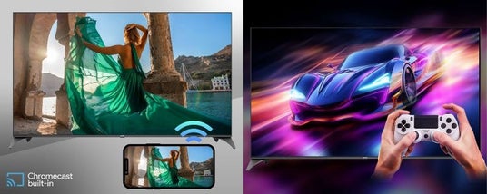 本製品にはChromecastが内蔵されており、スマートフォンやタブレットなどの画面を簡単にテレビに映し出すことができます。これにより、従来は小さい画面で見ていた写真・動画・ゲームを迫力のある大画面で手軽にお楽しみいただけます。