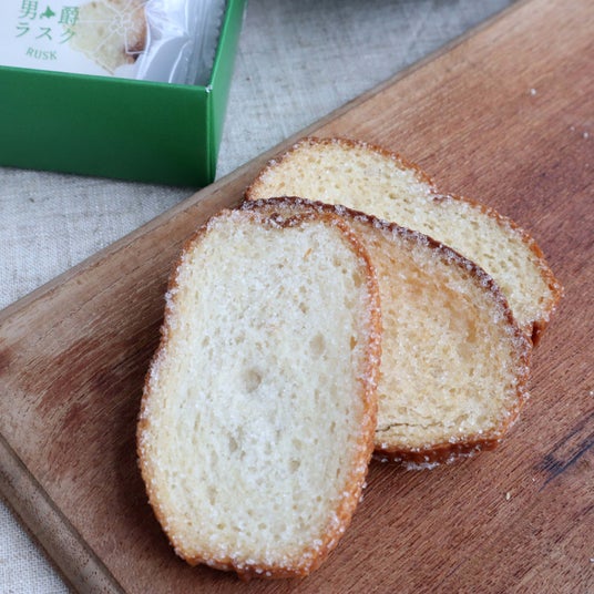 北海道ブランドのコラボでお届けする「男爵ラスク」北海道のおいしい素材とつくり手が揃ってお伝えする、北海道の本気のラスクが新登場。 北海道産男爵いものフレークを国産小麦の生地に練り込みんだ「男爵ラスク」です。