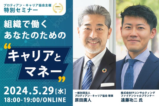一般社団法人プロティアン・キャリア協会(東京都新宿区、代表理事:田中研之輔・有山徹、以下「当協会」)は、組織と個人のより良い関係構築と個人の主体的なキャリア開発を支援する団体です。この度、2024年5月29日(水)18:00~「組織で働くあなたのためのキャリアとマネーセミナー」をオンラインにて開催します。
