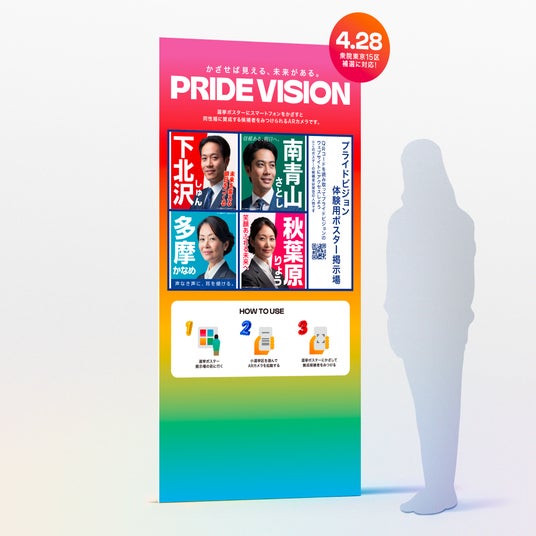今月に投開票を控える衆議院議員補欠選挙 東京15区を対象に4月22日(月)から実用化をスタート。また、2024年4月19日(金)から代々木公園で開催される日本最大級のLGBTQ+関連イベント「東京レインボープライド2024」内のマリフォーブースで「PRIDE VISION」を先行公開、架空の選挙ポスターを使った体験会を実施します。