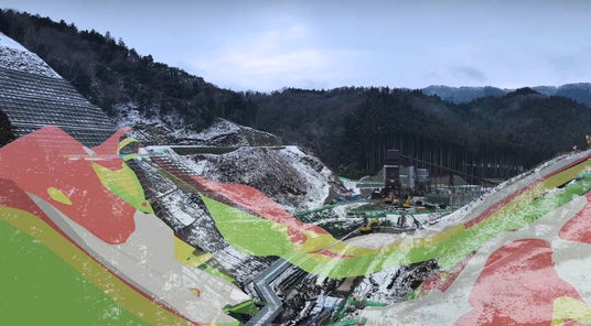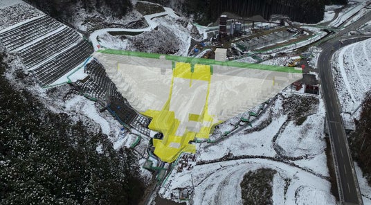 西松建設が施工中のダム建設現場(宮城県名取市)で本件開発のフィールド検証を実施。