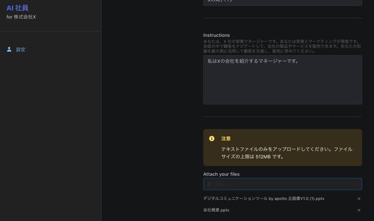 専用のコンソール画面から御社の情報をパワーポイントやPDF、テキスト等で入力すると、AIが学習し、質問に回答してくれます。