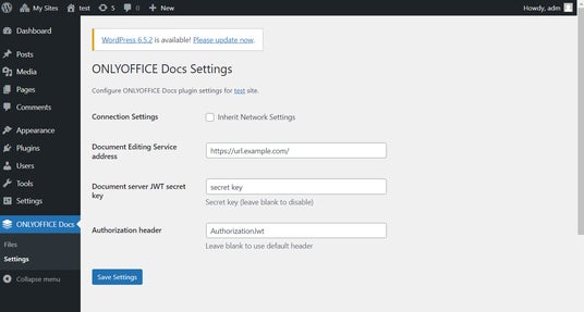 このアップデートからONLYOFFICE Docsプラグインもこの機能をサポートするようになりました。このため、スーパー管理者はすべてのサイトに対して一度にプラグインを設定したり、サイト管理者が自分のサイトのコネクタ設定を変更したりすることができます。