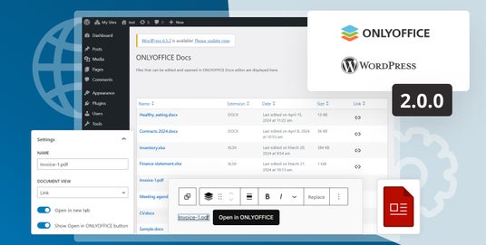 Ascensio Systems Pte. Ltd(シンガポール)は、4月17日にWordPress用ONLYOFFICE Docsをバージョン2.0.0にアップデートしたことを発表しました。マルチサイト機能、PDFフォームへの入力と注釈の追加、リンクとしてのファイル埋め込み、公開投稿での匿名ユーザーへのアクセスをサポートします。すべての改善点をご覧ください。