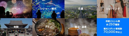 旅行ガイドブックシリーズに掲載されている7万件以上の日本の観光スポットを収録したデータです。不動の人気を誇る定番ガイドブック「まっぷるマガジン」などに掲載されている、見どころ、遊び・ショッピング・グルメスポット、宿泊施設、温泉施設といった観光スポット情報を、豊富な写真と充実のテキストデータでご提供します。ナビゲーションやWEBサイト、アプリの充実にお役立てください。