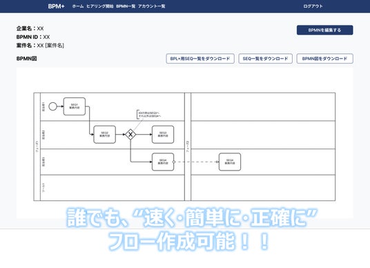 誰でも、“速く・簡単に・正確に”フロー作成可能!!業務フロー自動生成ツール【BPM+】特許申請中!