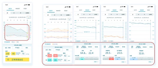 日々の測定結果を見やすいグラフで表示。健康状態の変化を直感的に把握することができます。