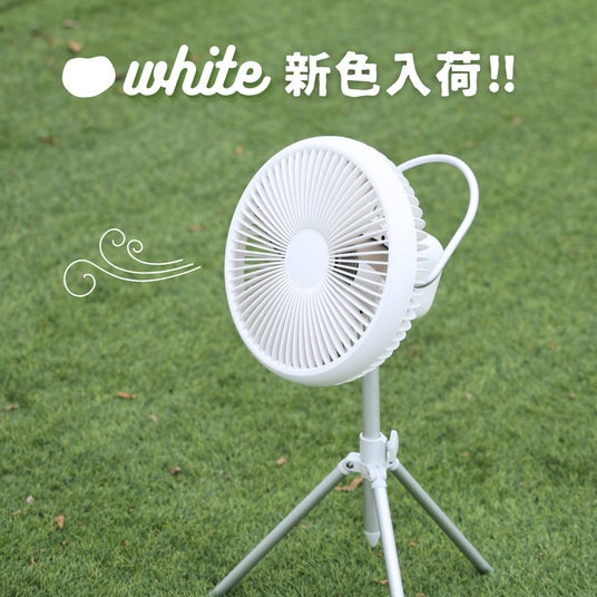 ブロンズ、オリーブグリーン、ホワイトの大人気の3色展開新色「ホワイト」追加!ブロンズ、オリーブグリーン、ホワイトの3色展開で登場するこの扇風機は、どんな環境にも自然と溶け込むマットな質感を持っています。家の中はもちろん、アウトドアでの使用にもぴったりです。特にキャンプ場での使用を想定してデザインされたこの扇風機は、写真映えアイテムとしても注目されており、機能性だけでなくスタイルにもこだわりたい方に理想的な選択肢です。