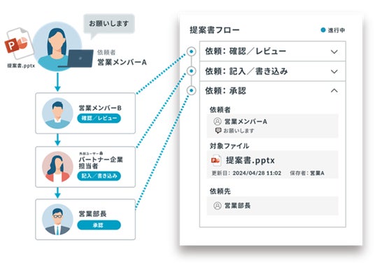 <利用シーン:営業部門・パートナー企業を含む提案書のレビューフロー>