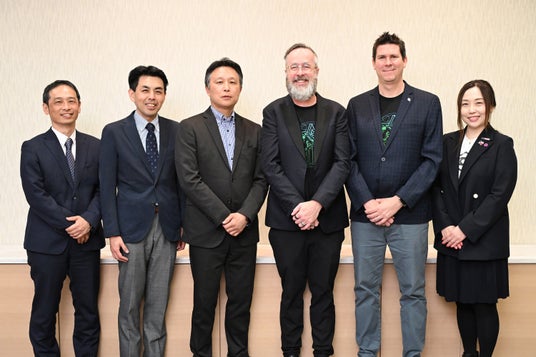 東芝デジタルソリューションズ 取締役常務 月野 浩 氏(左から3番目)、Strangeworks CEO William Hurley(右から3番目)