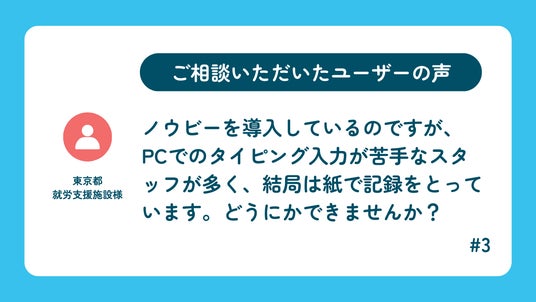 ノウビーを導入しているのですが、PCでのタイピング入力が苦手なスタッフが多く、結局は紙で記録をとっています。どうにかできませんか?