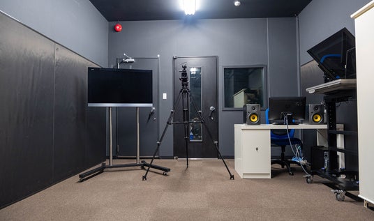 LEDライト(2台)・ビデオカメラCanon XA40(1台)・ピンマイク(2セット)・プロンプター(1台)・55インチモニタ(1台)三脚(1台)・オーディオインターフェイス(1個)・配信用PC ※OBSインストール済み(1台)