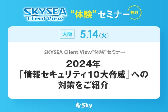 5月開催のセミナーでは、IT資産管理やログ管理、デバイス管理など「SKYSEA Client View」の代表的な基本機能に加え、お客様からご好評をいただいているオプション機能をピックアップしてご紹介。そのほか、ランサムウェアや内部不正、ゼロデイ攻撃など、「情報セキュリティ10大脅威」の上位にランクインした最新脅威への対策に役立つ機能をご紹介するセミナーも開催します。受講費は無料です。ぜひご参加ください。