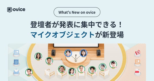 oVice株式会社(本社:石川県七尾市、代表取締役CEO:ジョン・セーヒョン)は、「今」の状況がわかり仕事のスピードが上がるバーチャルオフィス「ovice(オヴィス)」に、イベントなどでの登壇の際、登壇者のみがつながり発表ができる機能「マイクオブジェクト」を公開しました。マイクオブジェクトを使用するとイベントの参加者はマイクオブジェクトにつながることや範囲内に入ってマイクをオンにすることを制限できるため、参加者の声が誤って会場全体に届いてしまうのを防ぐことができます。