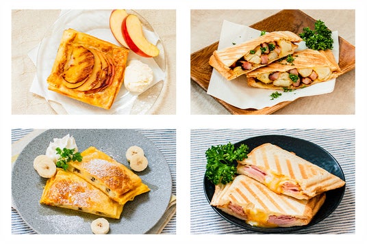 具だくさんでボリュームのあるホットサンドも、食パン1枚で作る薄いサンドも作れる
