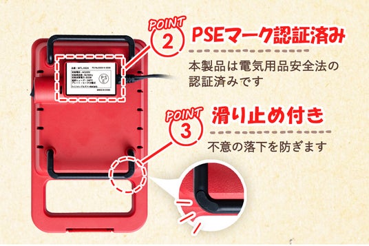 電気用品安全法(PSEマーク)認証済み製品のため、安心してお使いいただけます。
