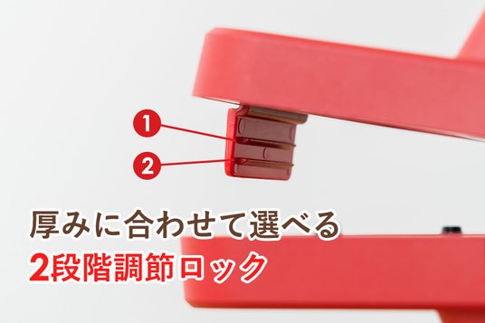 サンドの厚みに合わせて選べる、2段階調節のロック機能付き。